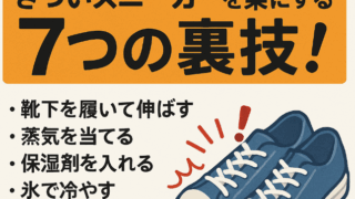 生活 きついスニーカーを楽にする7つの裏技!その解消法とは? この記事は、新しく購入したスニーカーが「きつい」「痛い」と感じている方や、履き始めの違和感に悩む方に向けた内容です。 スニーカーが足に馴染むまでの期間や、きつさを和らげる裏技、正しい選び方や試着のポイント、きついまま履き続けるリスクまで、幅広く解説します。快適なスニーカーライフを送りたい方は必見です! 生活