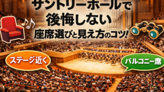 本記事は「サントリーホール 見え方 座席」で検索した方に向けて、S席・P席・RB席・2階席の違い、オーケストラ/ピアノ/室内楽でのおすすめ、避けたい席の考え方、チケット購入時のチェック方法までをまとめた“後悔しない座席選び”ガイドです。