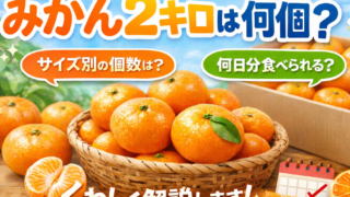 この記事では、みかん2キロの個数目安をサイズ別にわかりやすく整理し、1キロ・3キロ・5キロとの比較、一人暮らしや家族で何日分になるか、保存方法や購入時のチェックポイントまでまとめて解説します。
