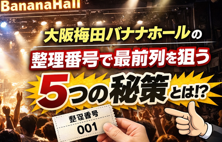 この記事では、バナナホールの整理番号の考え方と入場の流れを軸に、最前列(または前方)を狙うための“現実的に効く”5つの秘策を、チェックリスト付きでわかりやすくまとめます。