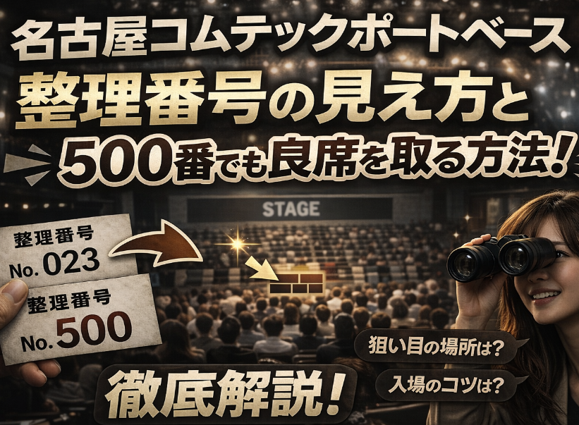 さらに、500番台でも“良席(見やすい位置)”を取りやすくする準備・到着目安・ロッカー運用・ドリンクの使い方まで、当日の行動に落とし込んで解説します。