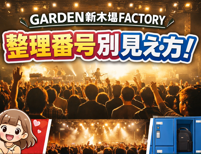 GARDEN新木場FACTORYで「整理番号○番だとどれくらい見える?」「最前列は何番まで?」「後方だと見えない?」と不安な人向けに、整理番号帯ごとの見え方の目安、最前を狙う動き方、見えにくい場所の特徴、ロッカー・物販・ドリンク代など当日の実務までをまとめた記事です。