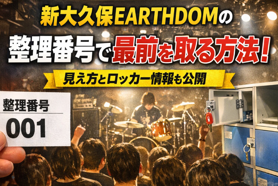この記事は、新大久保EARTHDOMでライブを見る予定があり、「整理番号でどのあたりに入れるのか」「最前は何番くらいまで狙えるのか」「見え方は良いのか」「ロッカーは使いやすいのか」を事前に知っておきたい人に向けたガイドです。