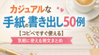 この記事は、友達や恋人、同僚、目上の友人などに送るカジュアルな手紙の書き出しに悩んでいる人に向けたガイドです。 「何から書けば自然なのか分からない」「そのまま使える文例がほしい」「失礼にならない言い回しも知りたい」という悩みに応えるため、用途別の書き出し50例と、手紙全体の基本構成、季節の挨拶、相手別のトーン調整、メールやLINEでの応用までまとめました。 コピペで使える実例だけでなく、少し変えるだけで自分らしい文章にできるコツもわかりやすく紹介します。